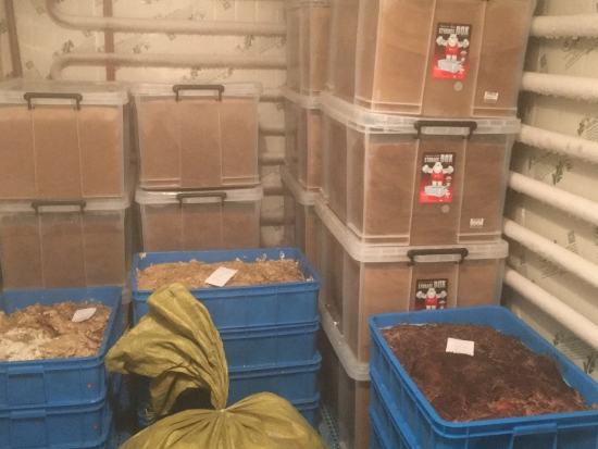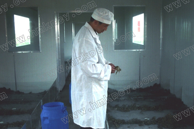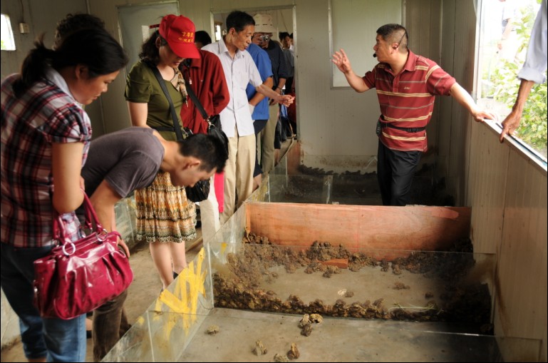 消費(fèi)者在楊鳴澤的蟾衣采制基地觀看蟾蜍蛻衣 -